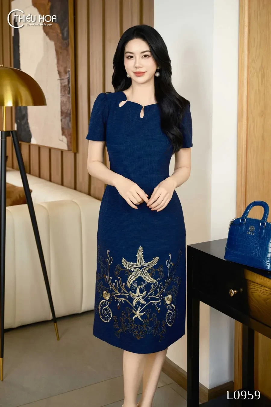 Đầm suông trung niên thiết kế sang trọng chất liệu Vải dệt cao cấp thương hiệu Thiều Hoa DD4L0959