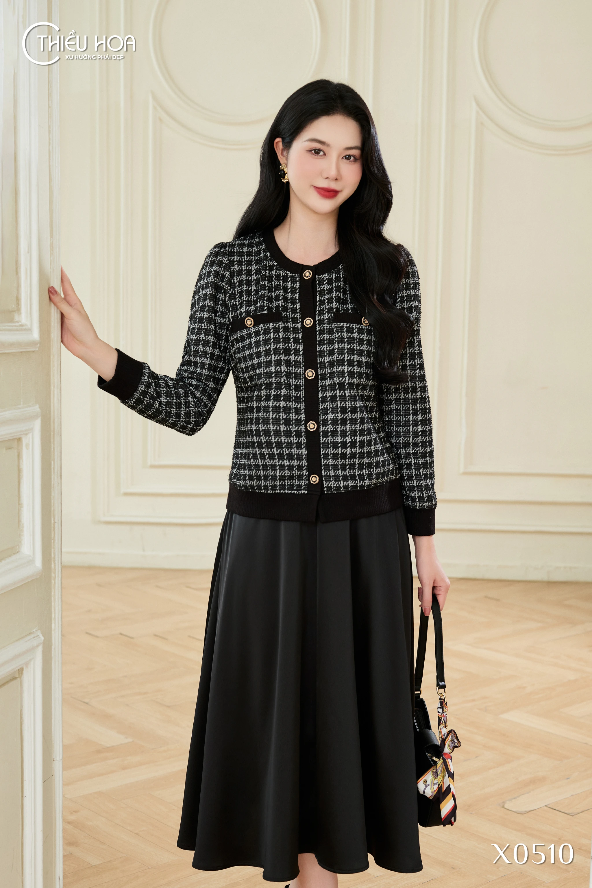 Họa tiết caro đen – trắng cổ điển: Mảng màu trung tính phối nhịp nhàng, tôn lên nét tinh tế và thời thượng của người mặc.