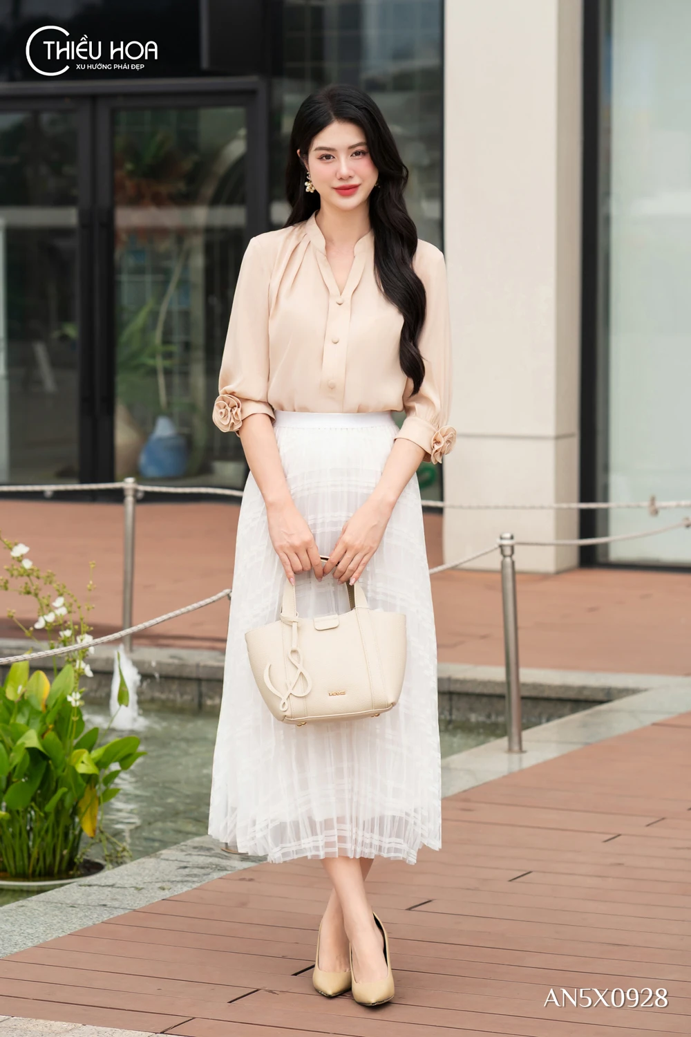 Để tối ưu hóa vẻ đẹp của mẫu áo kiểu trung niên voan AN5X0928, bạn có thể áp dụng các công thức phối đồ sau: