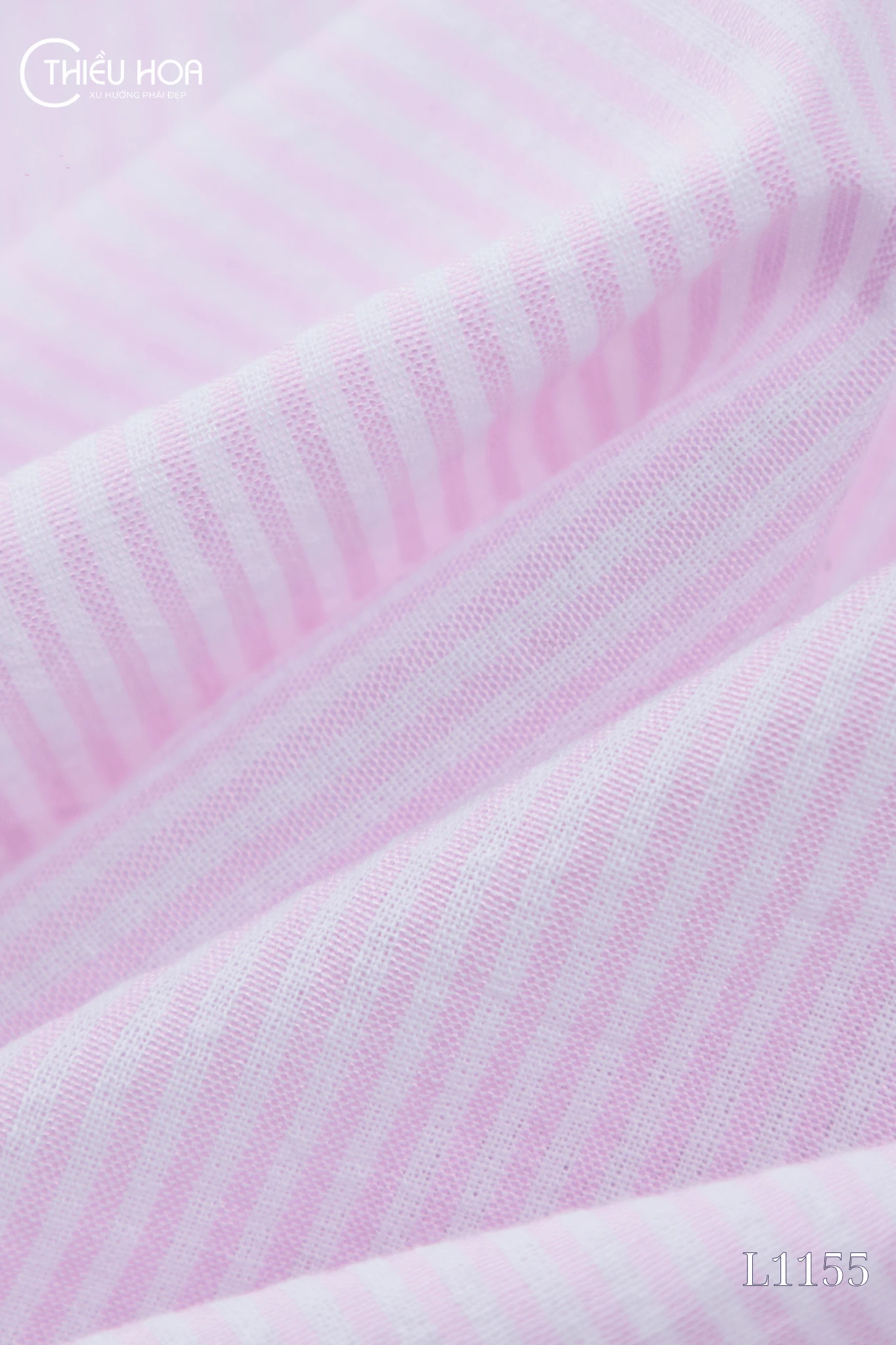 Chiếc áo sử dụng vải kate sọc dọc cao cấp, mềm mịn và thoáng mát. Chất liệu này không chỉ mang đến cảm giác dễ chịu, nhẹ tênh khi mặc mà còn có khả năng thấm hút tốt, không gây bí bách – đặc biệt phù hợp với điều kiện thời tiết nóng ẩm như mùa xuân – hè. Độ rủ vừa phải của vải giúp giữ phom áo đẹp và bền dáng sau nhiều lần sử dụng.