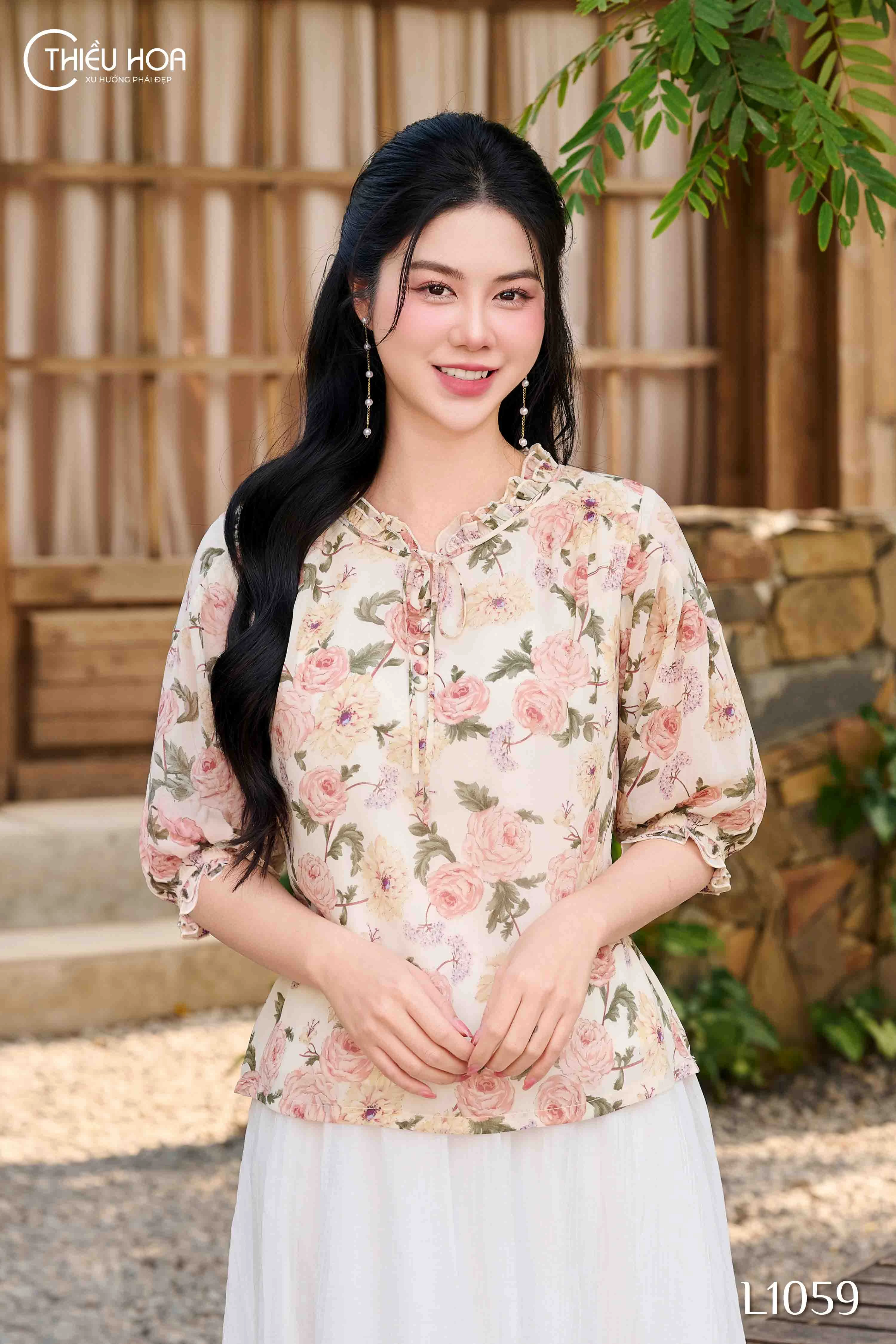 Áo Kiểu Trung Niên Dệt Hoa Nút Hoa Ánh Kim Tay Phồng Thanh Lịch AN5X0501 – Thiều Hoa