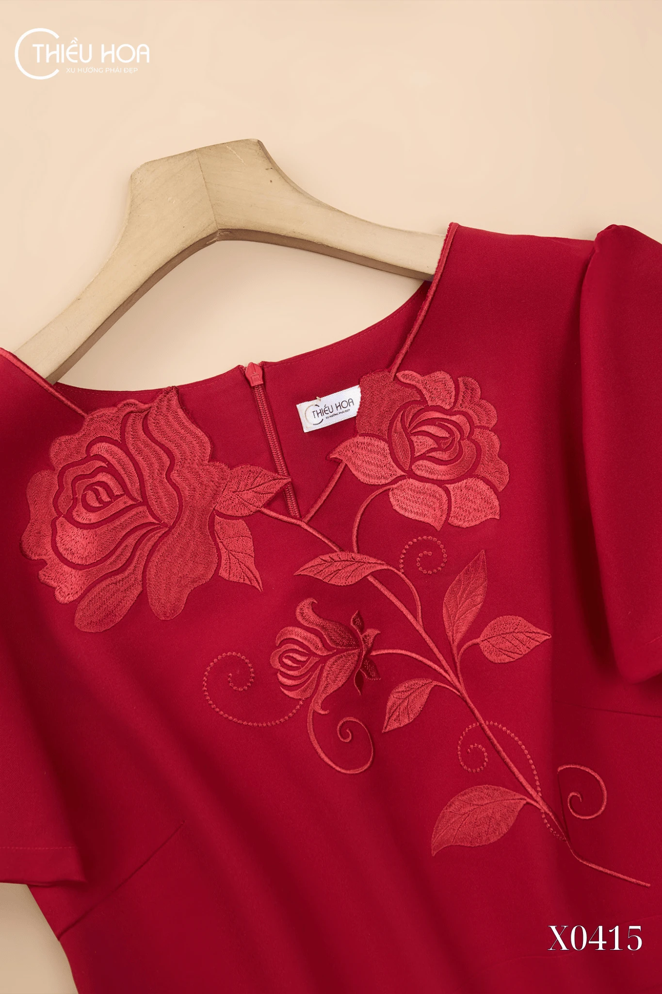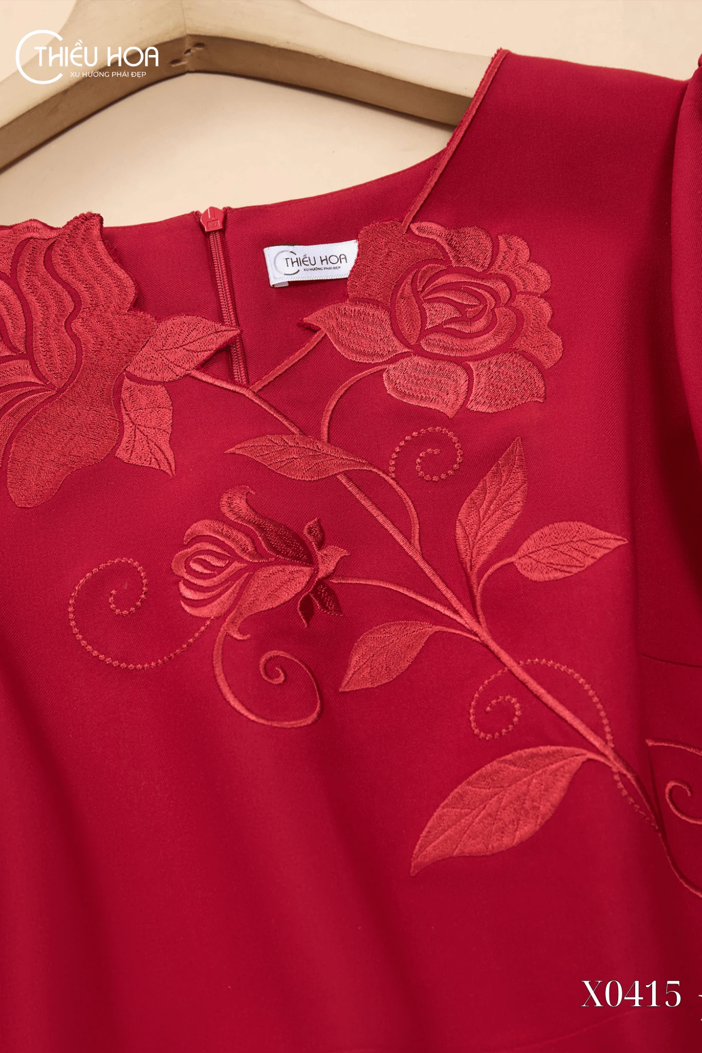 Kỹ thuật thêu tinh xảo: Họa tiết hoa hồng được thêu thủ công ở ngực, tạo điểm nhấn sang trọng và độc đáo.