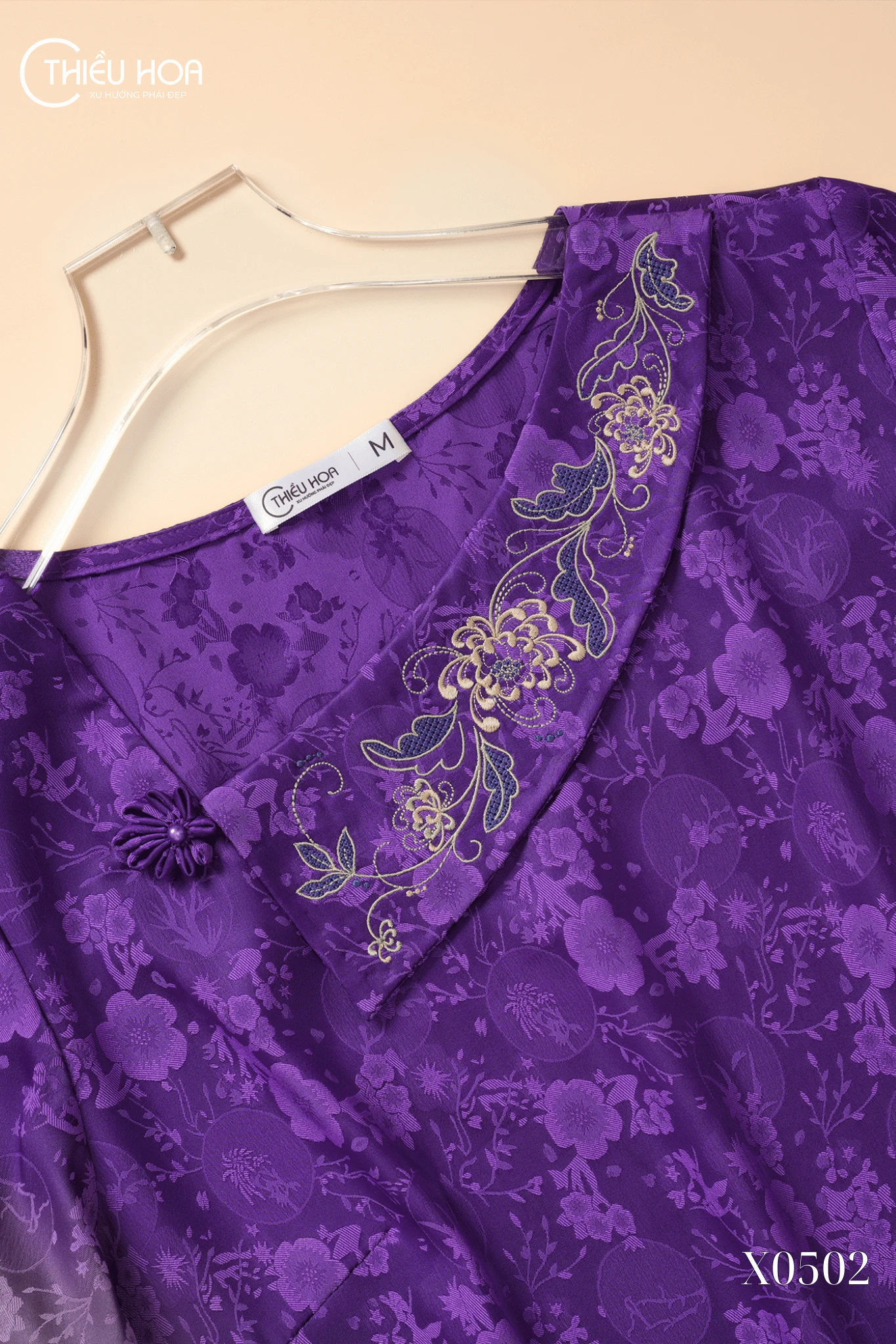 Áo gấm hoa AN5X0502 sử dụng chất liệu gấm cao cấp, với họa tiết hoa in chìm tinh xảo, tạo chiều sâu thị giác và vẻ ngoài sang trọng, quý phái. Chất vải này dễ dàng chăm sóc và bảo quản, giúp áo luôn bền đẹp. Áo có dáng suông nhẹ nhàng, giúp che khuyết điểm cơ thể một cách khéo léo nhưng vẫn đảm bảo sự thoải mái khi mặc.