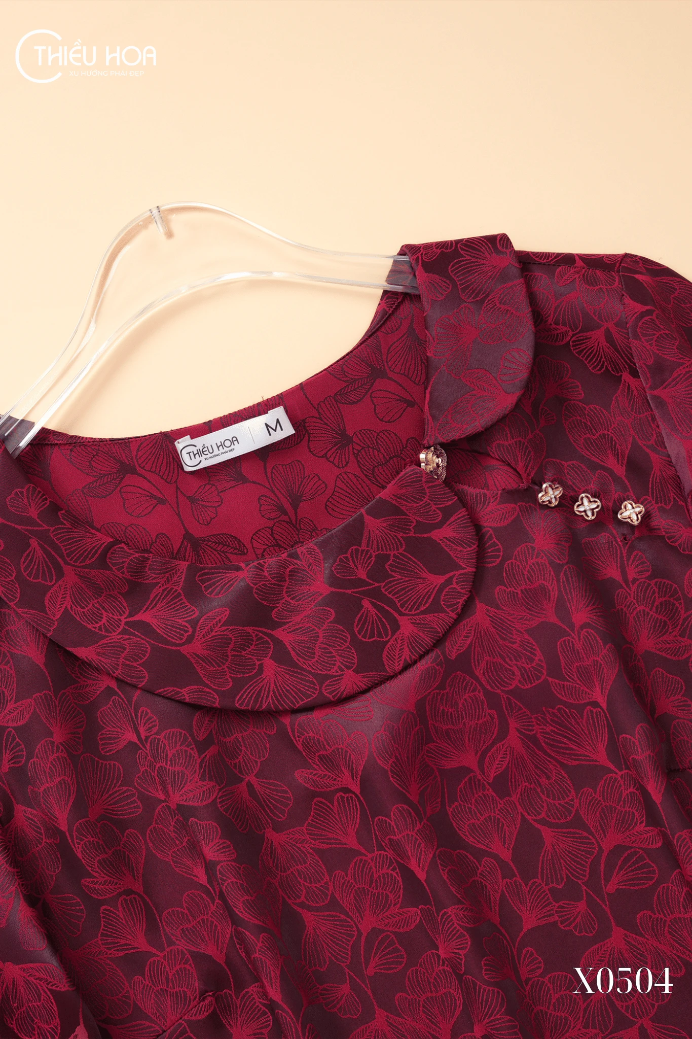 Áo gấm hoa AN5X0504 sử dụng chất liệu gấm cao cấp, với bề mặt hơi bóng và họa tiết hoa in chìm, tạo chiều sâu và hiệu ứng sang trọng, quý phái. Chất vải có độ dày vừa phải, mang lại cảm giác mềm mại và thoải mái khi mặc.