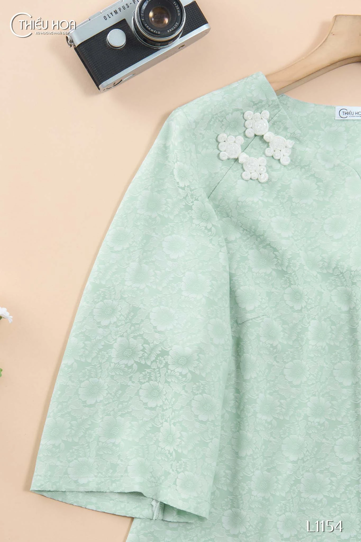 Mẫu AN4L1154 sử dụng chất liệu gấm hoa cúc họa mi cao cấp, với bề mặt mềm mịn, mát lạnh, mang đến cảm giác dễ chịu suốt cả ngày dài. Vải co giãn nhẹ, ít nhăn và dễ bảo quản, vừa tiện dụng vừa giữ được sự chỉn chu trong từng lần mặc. Màu xanh thạch anh dịu mát, thanh lịch nhưng vẫn đủ sức tạo nên dấu ấn sang trọng riêng biệt cho người mặc.