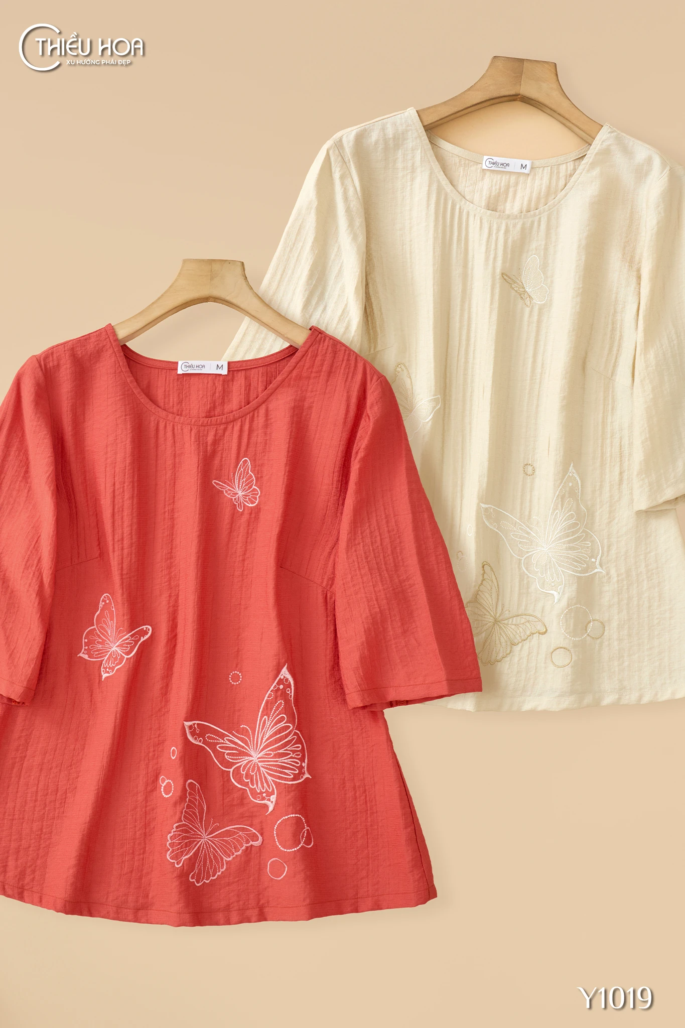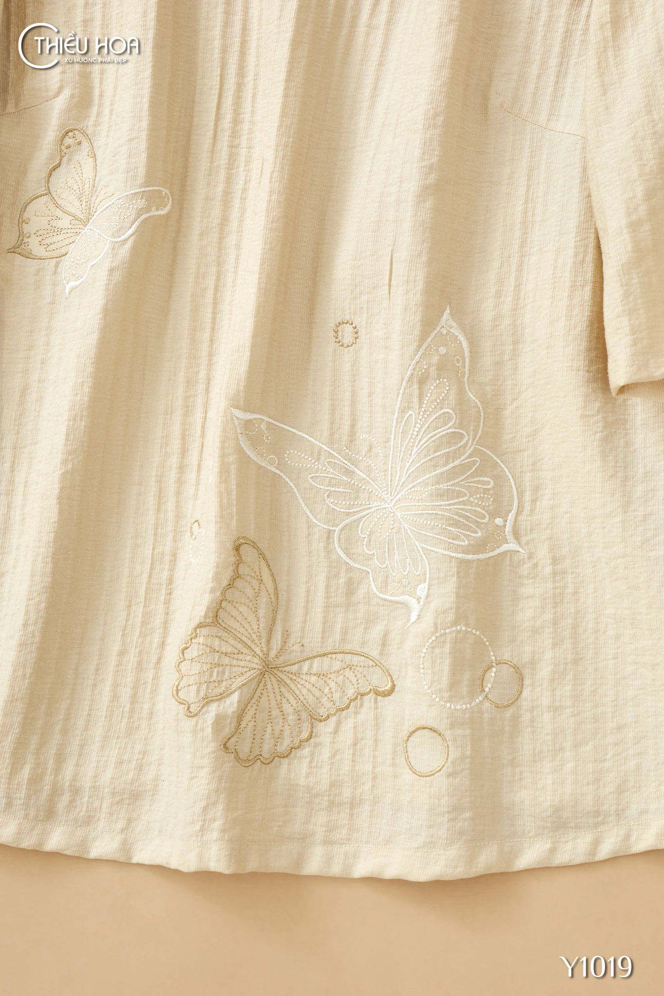 Đặc biệt, áo được thêu hình ảnh tỉ mỉ và dễ thương với chủ đề vườn bươm bướm mùa xuân, tạo nên điểm nhấn độc đáo, chỉ có tại Thiều Hoa. Họa tiết này mang lại vẻ đẹp nhẹ nhàng, tươi mới và lôi cuốn, thích hợp cho những ai yêu thích sự tinh tế và khác biệt.