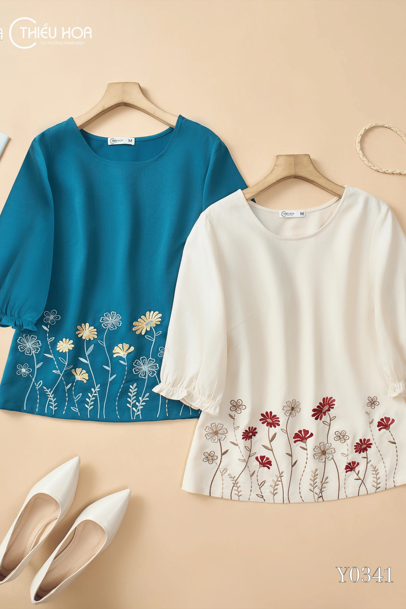Họa tiết thêu độc đáo: Hình thêu vườn hoa tinh xảo tạo nên vẻ ngoài độc đáo, trẻ trung mà không kém phần sang trọng, phù hợp nhiều hoàn cảnh từ đi làm đến dạo phố.