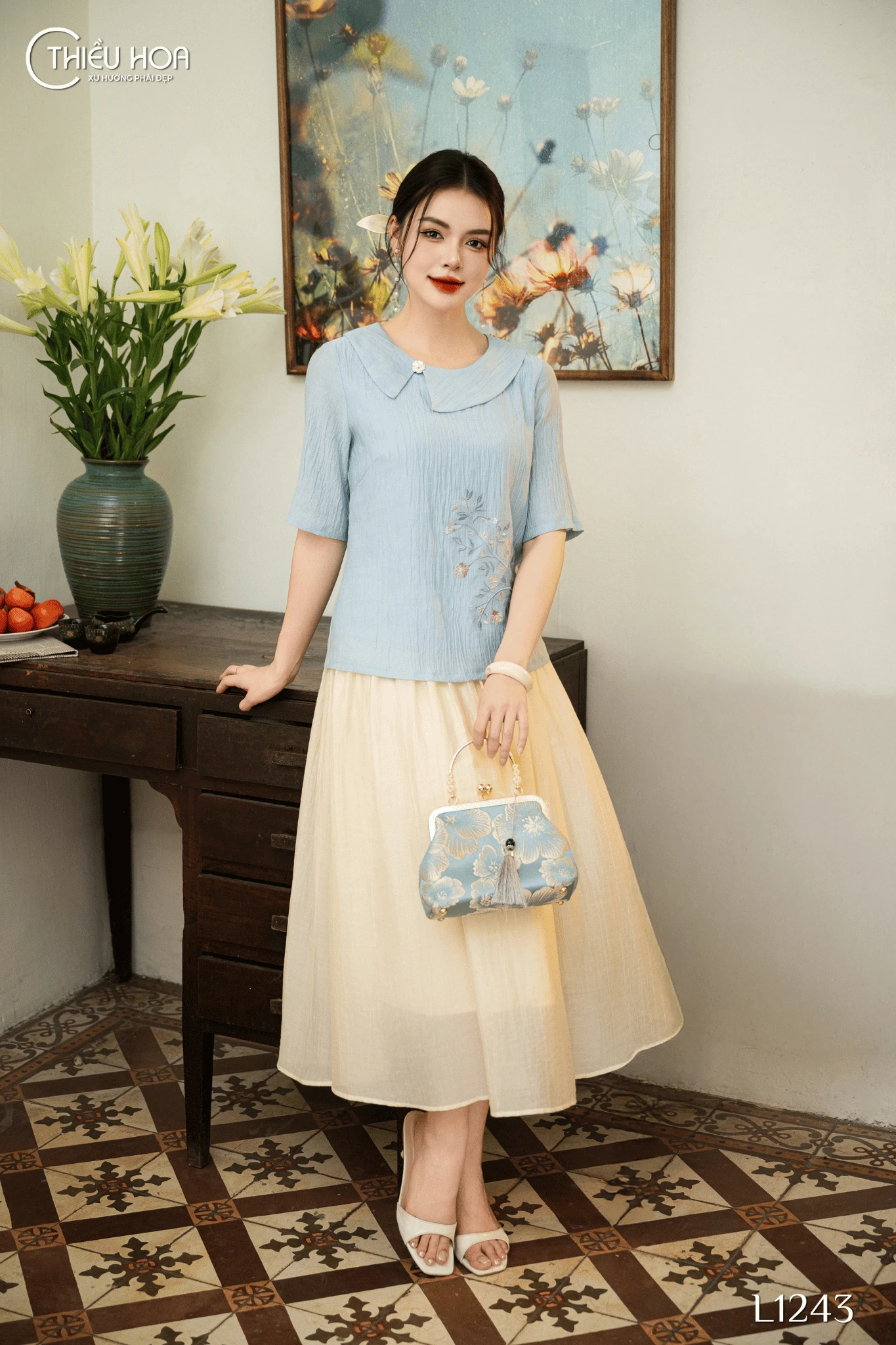 Chiếc áo này sẽ trở nên hoàn hảo khi kết hợp cùng chân váy CV4L1235 – tạo nên set đồ hài hòa cho những dịp gặp gỡ, dạo phố hoặc đi làm. Mỗi chi tiết đều được tính toán kỹ lưỡng để mang lại sự thoải mái, tự tin và quý phái cho người mặc.