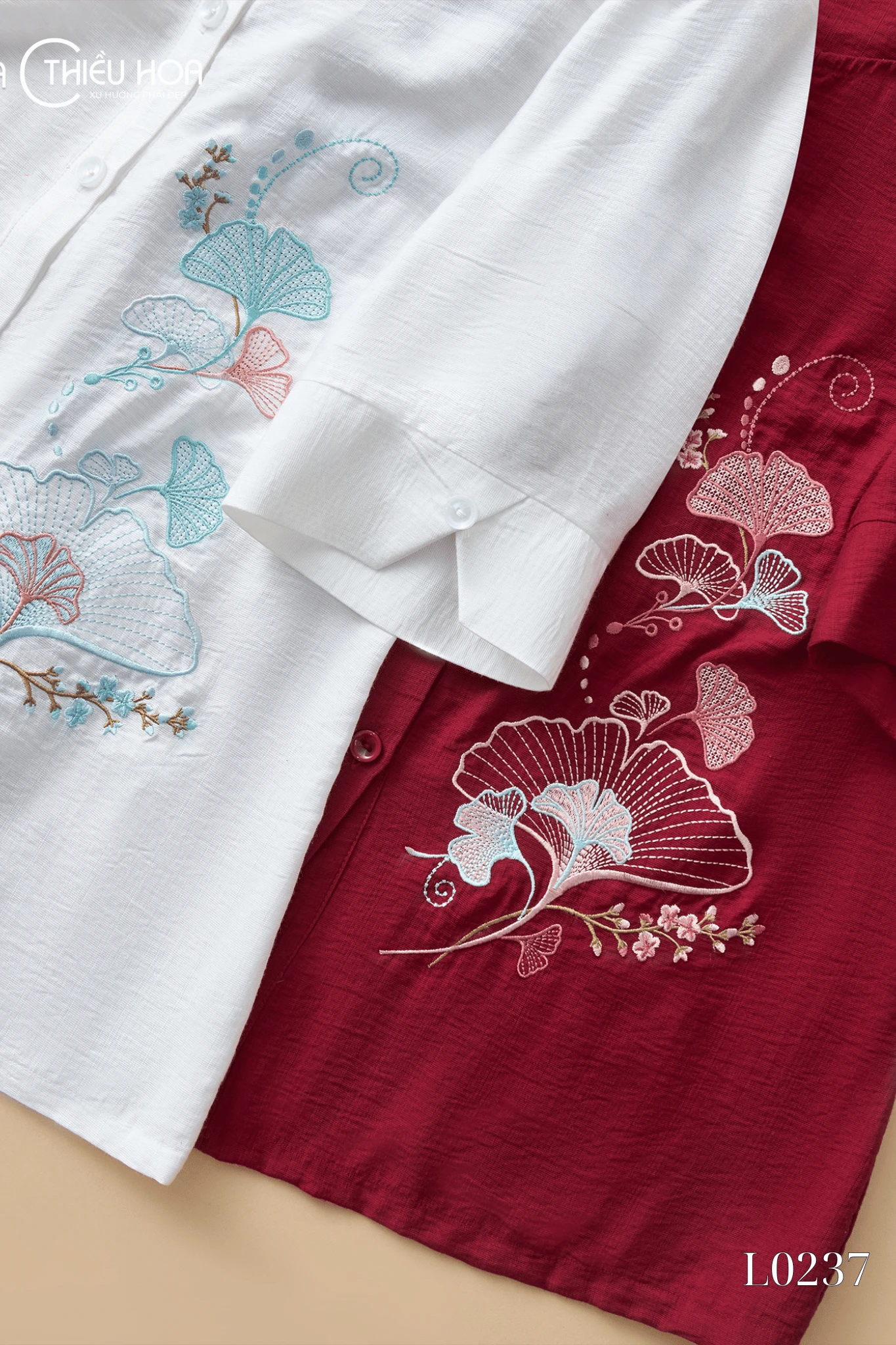 Điểm nhấn nổi bật nằm ở phần hình thêu hoa văn truyền thống, được thêu tay tỉ mỉ ở viền tay áo và lai áo. Họa tiết thêu độc quyền không chỉ làm tăng giá trị thẩm mỹ cho sản phẩm mà còn mang đến nét chấm phá đặc trưng đậm chất Á Đông.