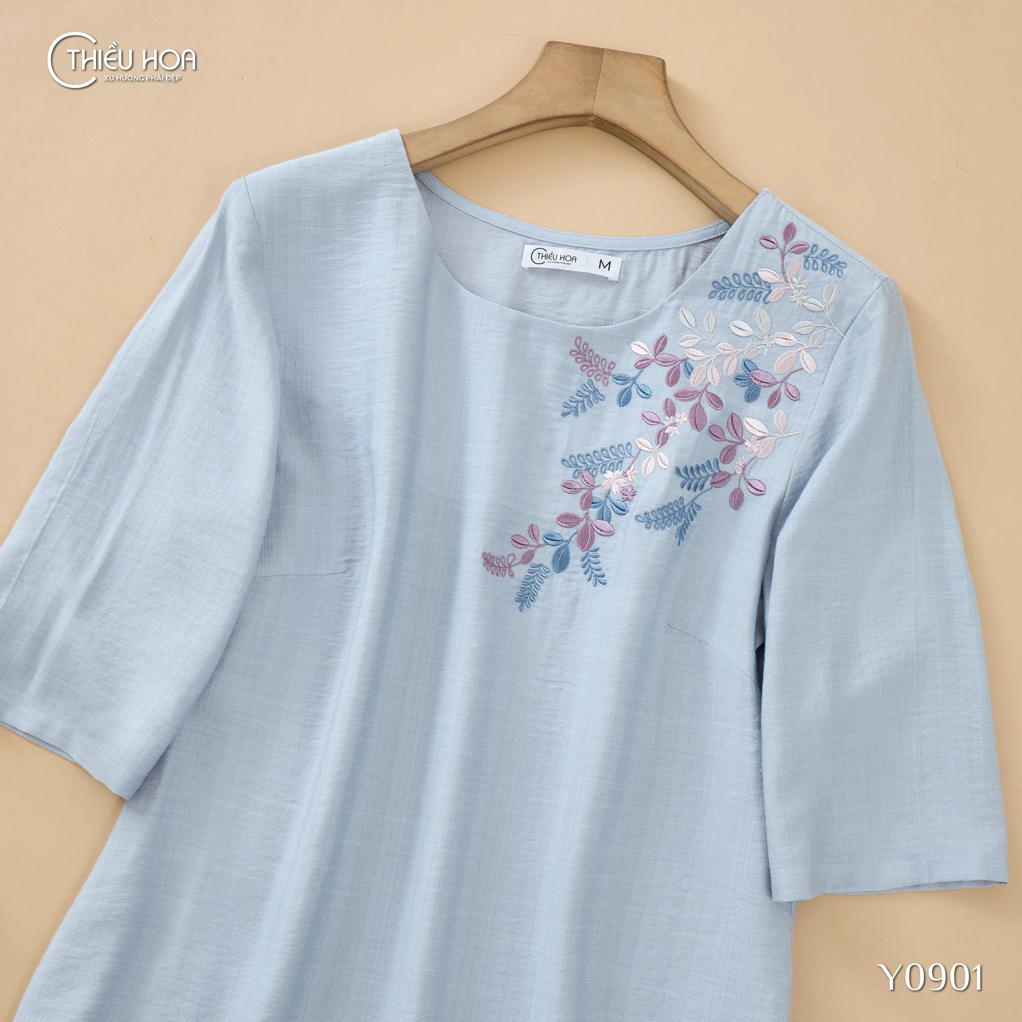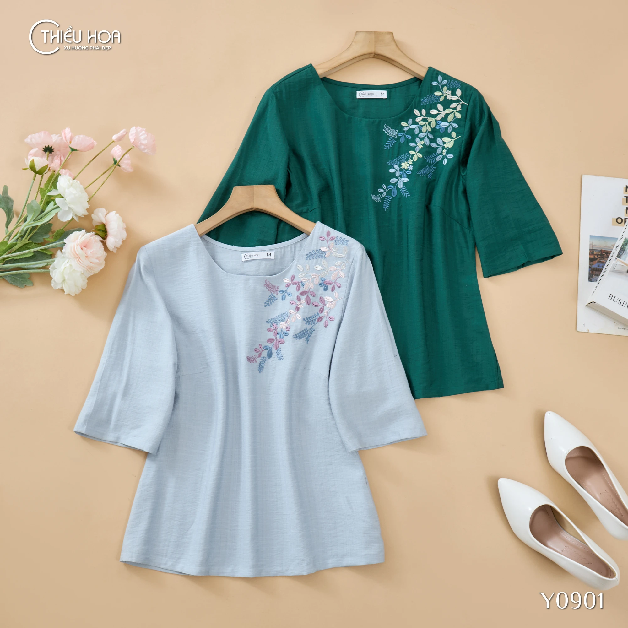 - Họa tiết thêu được thiết kế độc quyền tại Thiều Hoa, tạo nên điểm nhấn riêng biệt và vô cùng tinh xảo, làm tăng thêm phần nữ tính và trang nhã cho chiếc áo.