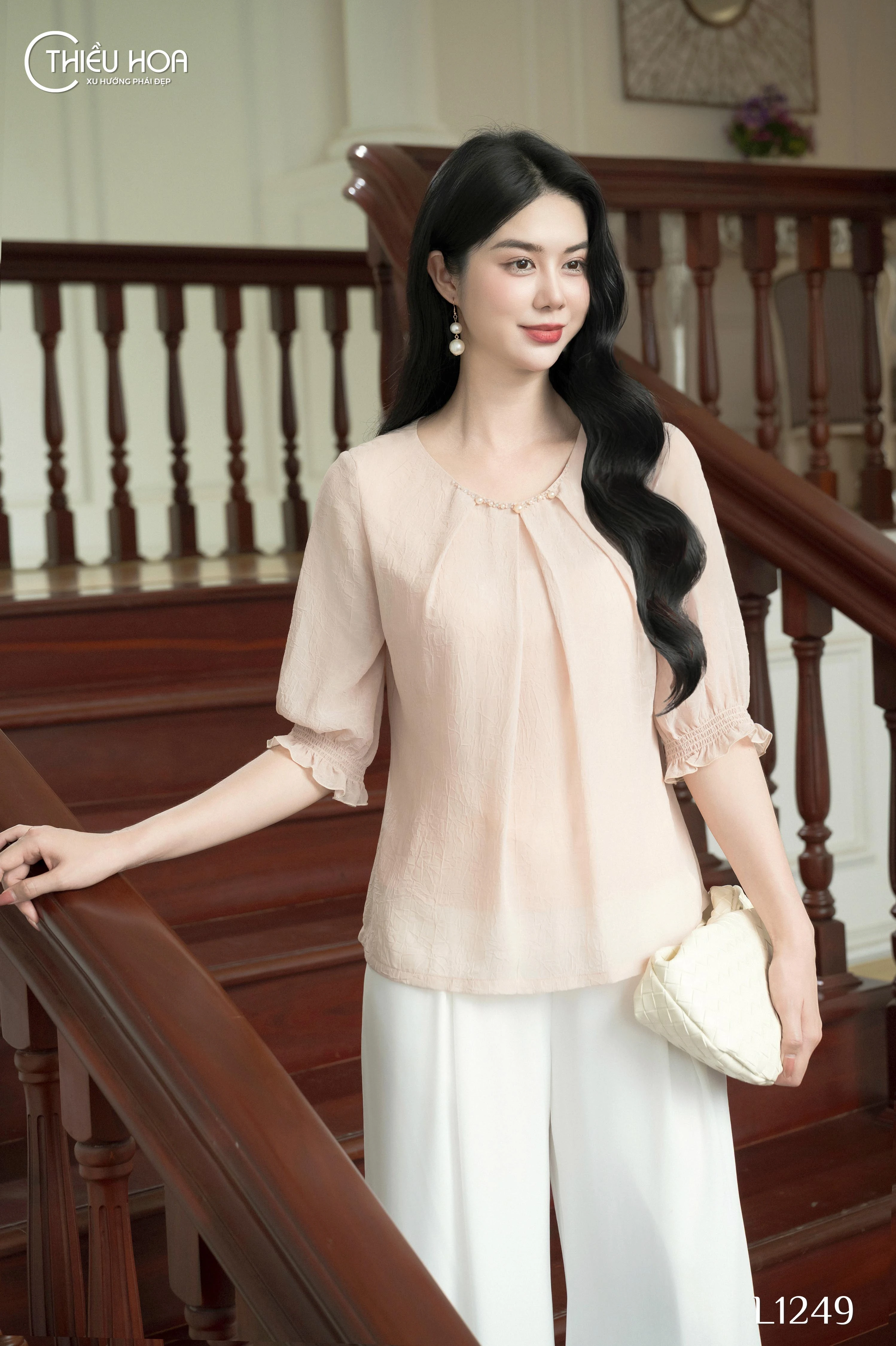 Kết hợp cùng quần QD4L0627 giúp tổng thể set đồ trở nên thanh lịch, nhẹ nhàng, nhưng vẫn hiện đại và trẻ trung.