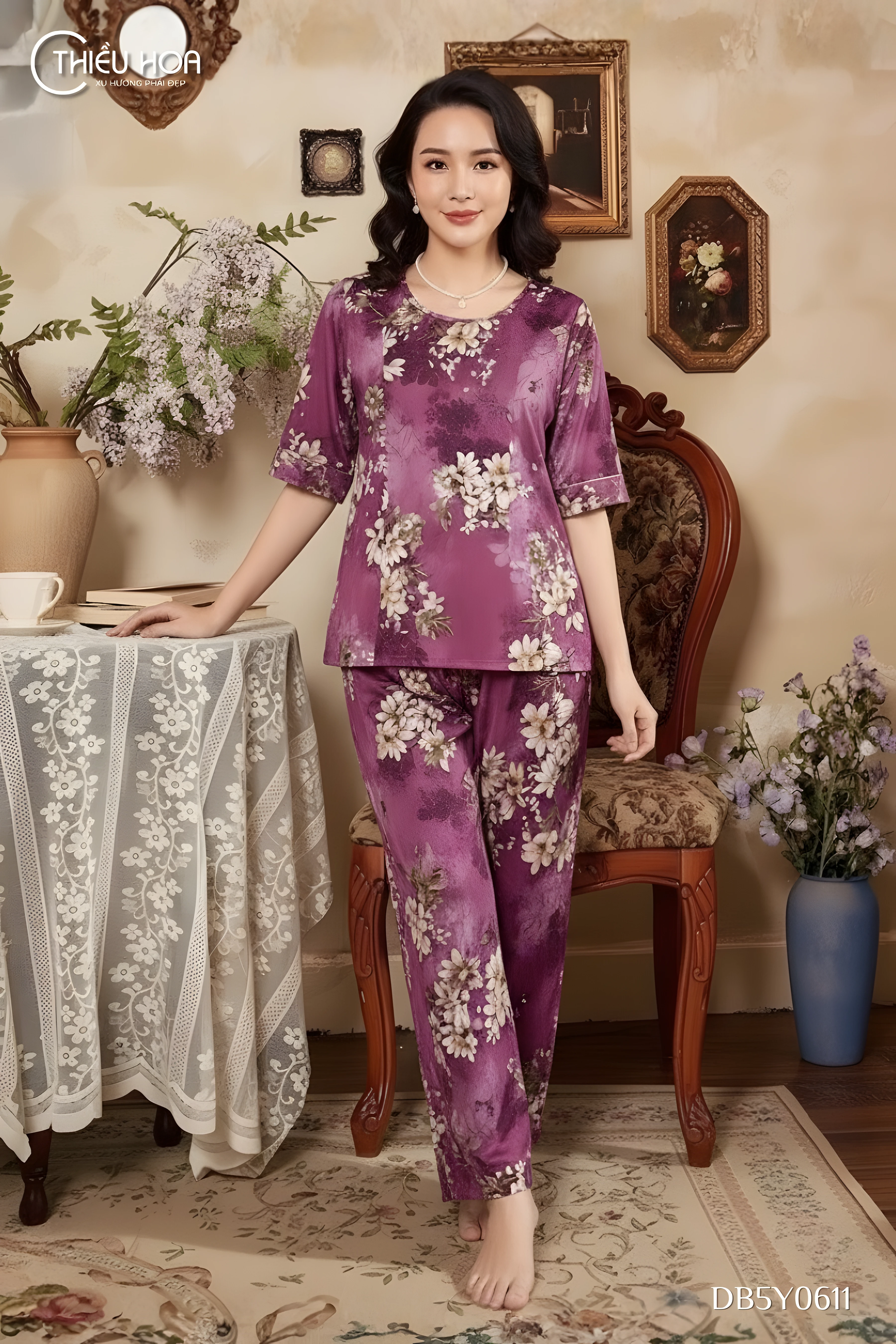 Mang đến nét đẹp thanh lịch và sự thư thái tuyệt đối, đồ bộ lụa DB5Y0611 chính là "chân ái" cho những ngày thời tiết nóng ẩm. Sở hữu chất lụa mềm mịn, nhẹ tênh cùng phom dáng suông rộng che khuyết điểm tinh tế, thiết kế này giúp quý cô luôn thoải mái, rạng rỡ và duyên dáng ngay cả khi ở nhà hay đi dạo nhẹ nhàng.