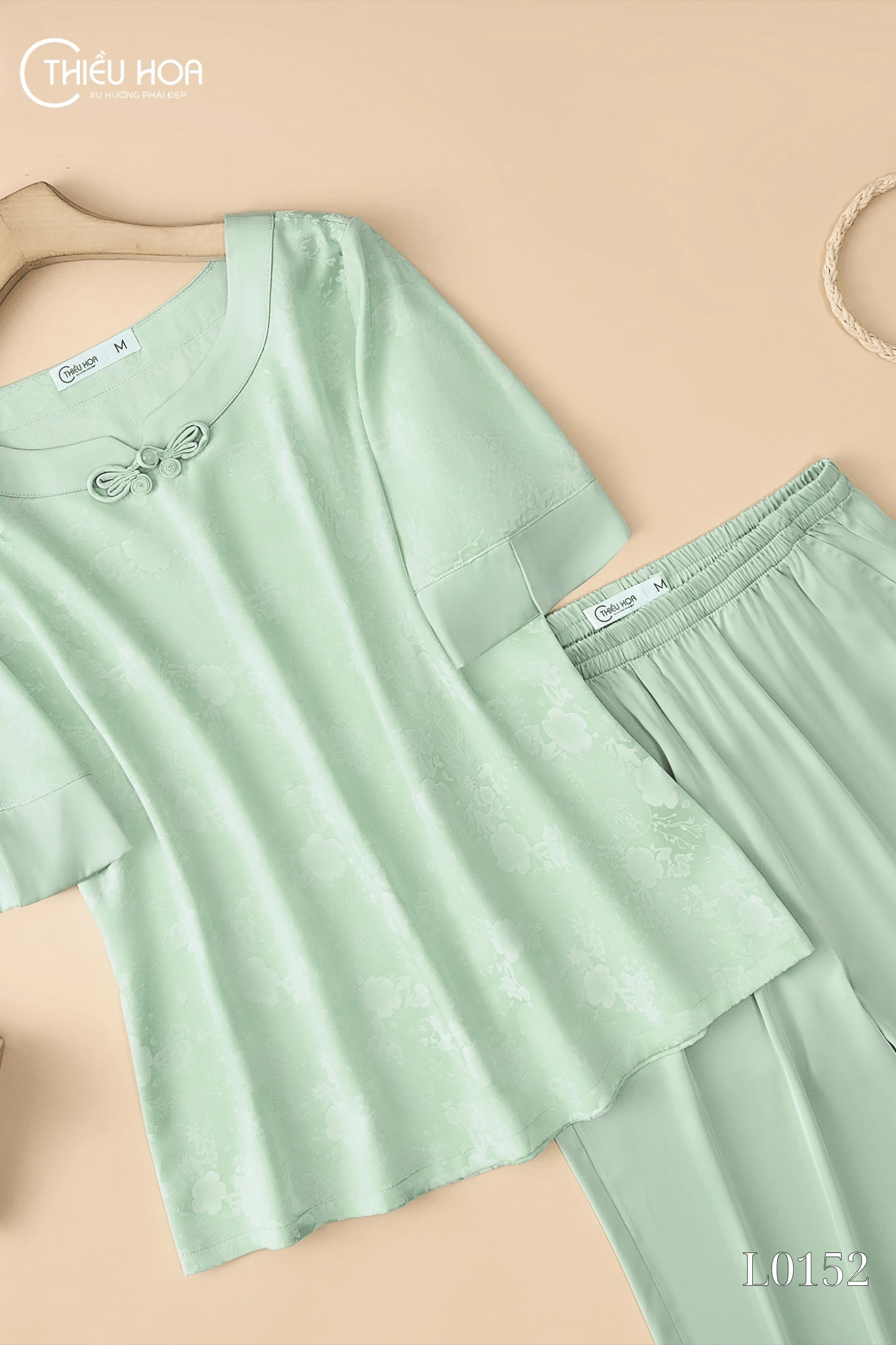 Màu sắc trang nhã, hoa văn nhẹ nhàng cùng kỹ thuật may sắc sảo – tạo nên mẫu đồ bộ trung niên cao cấp, sang trọng nhưng vẫn tiện dụng cho các hoạt động thường ngày.
