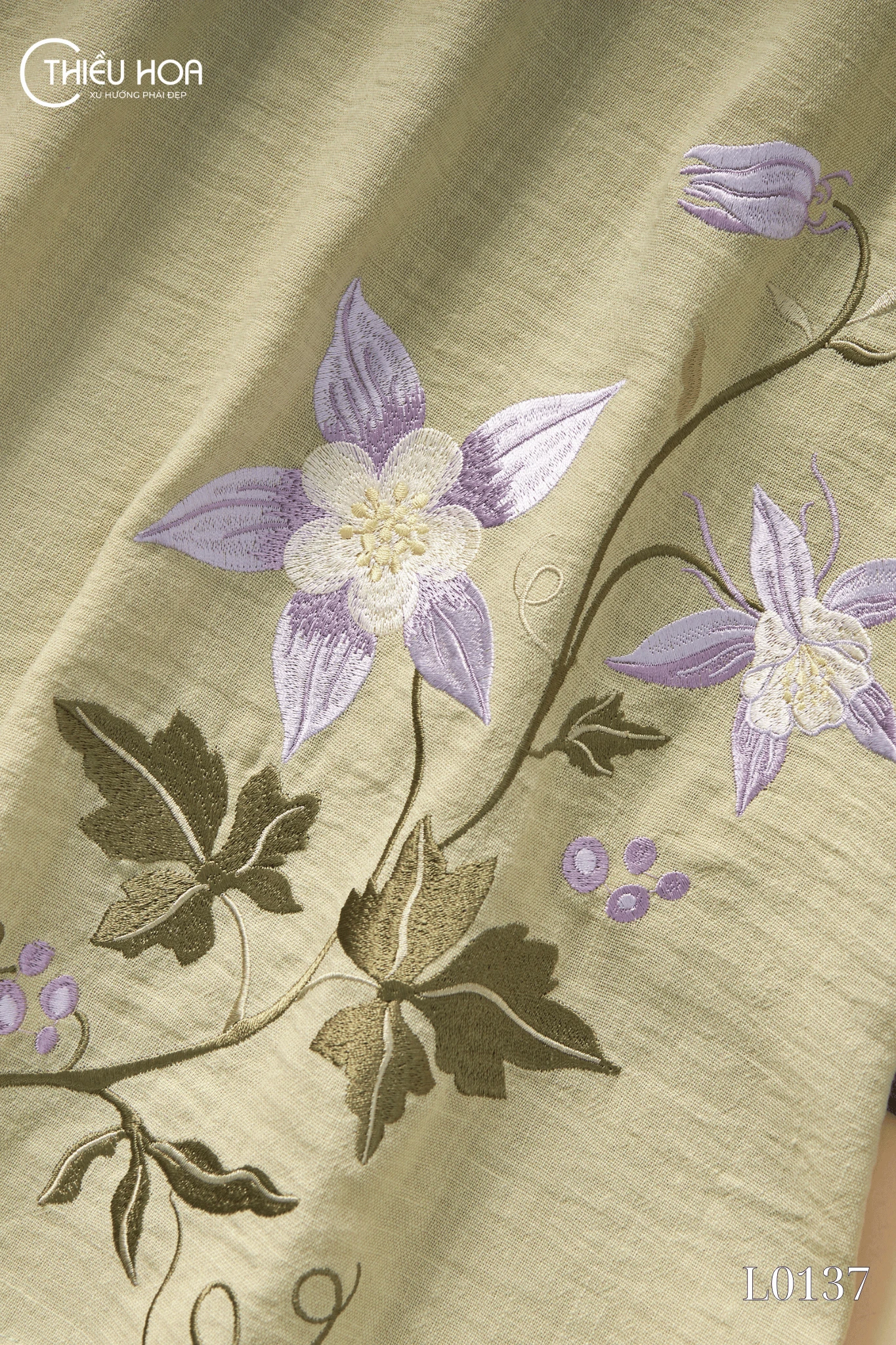 - Họa tiết hoa thêu máy tỉ mỉ, đồng điệu về màu sắc, nổi bật trên nền vải trơn mang lại sự nhẹ nhàng, nữ tính và không kém phần cao cấp.