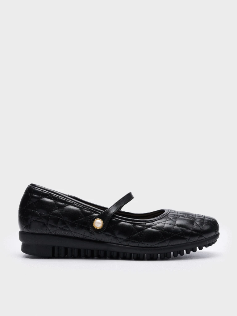 Giày búp bê nữ GB5B0099 gây ấn tượng với chất liệu da PU dập vân chéo mô phỏng họa tiết quilt sang trọng, tạo hiệu ứng ánh sáng bắt mắt khi di chuyển. Thiết kế mũi vuông bo tròn nhẹ mang đến sự hài hòa giữa phong cách hiện đại và cảm giác êm ái. Phần quai ngang đính ngọc trai tinh xảo là điểm nhấn nổi bật, vừa thanh lịch vừa tôn lên nét nữ tính đặc trưng – lý tưởng cho những cô nàng yêu thích sự chỉn chu trong từng chi tiết.