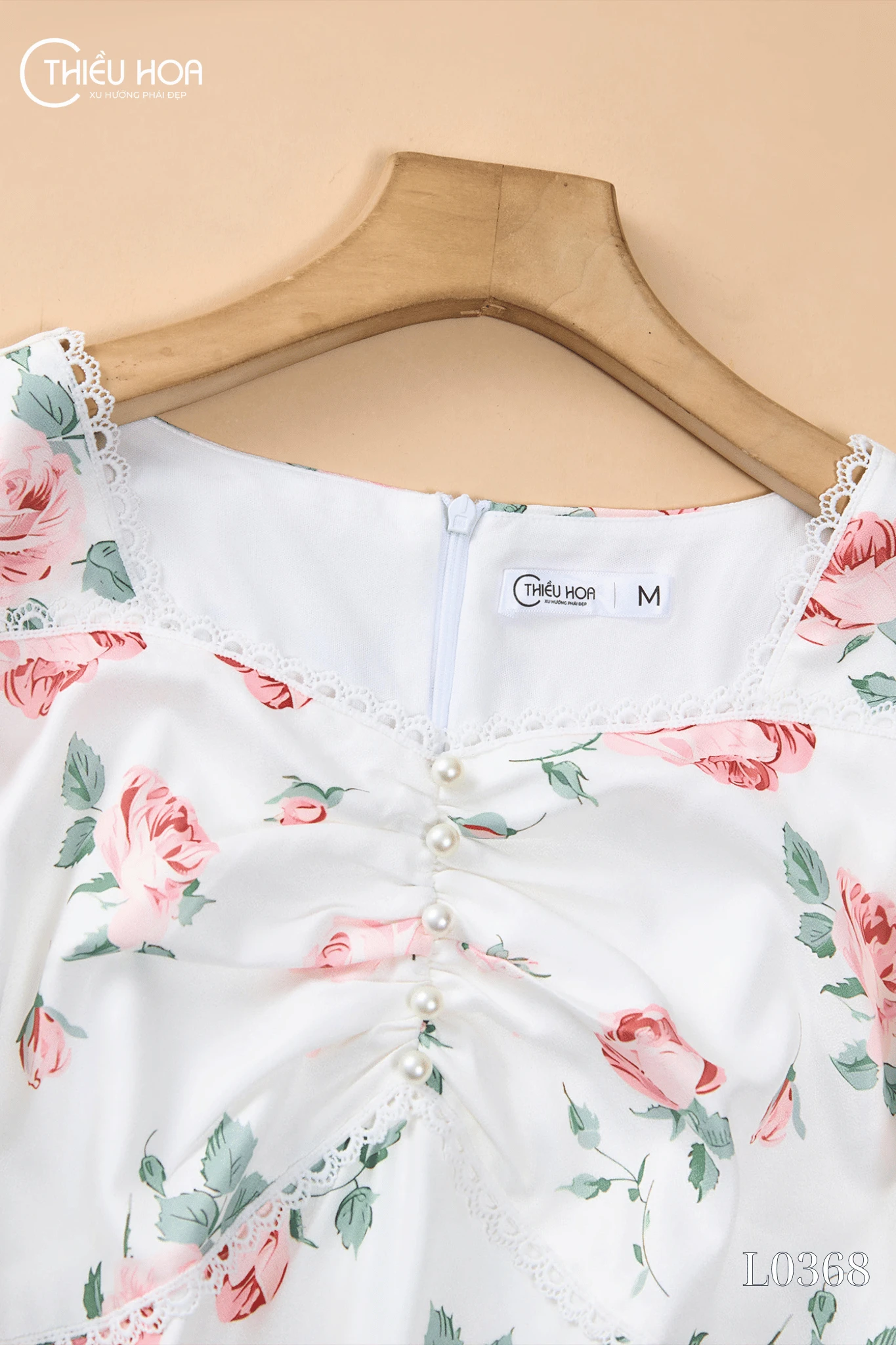 Đầm trung niên DD5L0368 được may từ chất liệu cotton lụa cao cấp, mỏng nhẹ và thoáng mát, với bề mặt mềm rũ tự nhiên, mang lại cảm giác thoải mái tối đa khi mặc. Họa tiết hoa hồng phấn trên nền trắng tinh khôi mang hơi thở lãng mạn, nữ tính và cổ điển. Thiết kế cổ vuông nhẹ nhàng giúp tôn lên phần vai và xương quai xanh thanh thoát. Phần ngực nhún nhẹ tạo điểm nhấn duyên dáng, kết hợp tay ngắn bồng viền ren trắng ngọt ngào, cổ điển. Dáng váy chữ A dài ngang bắp chân rất dễ mặc, giúp che khuyết điểm hiệu quả mà vẫn giữ được sự mềm mại, uyển chuyển.