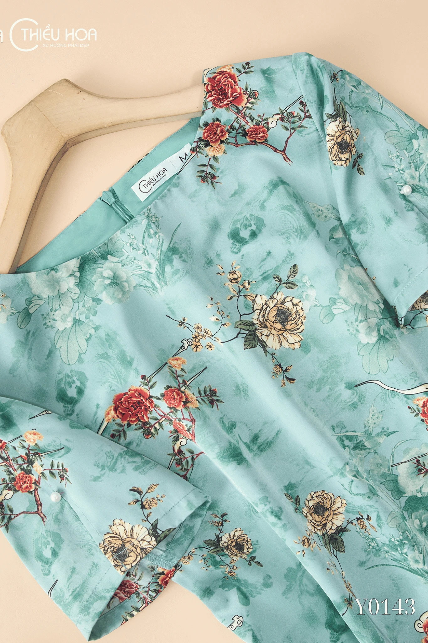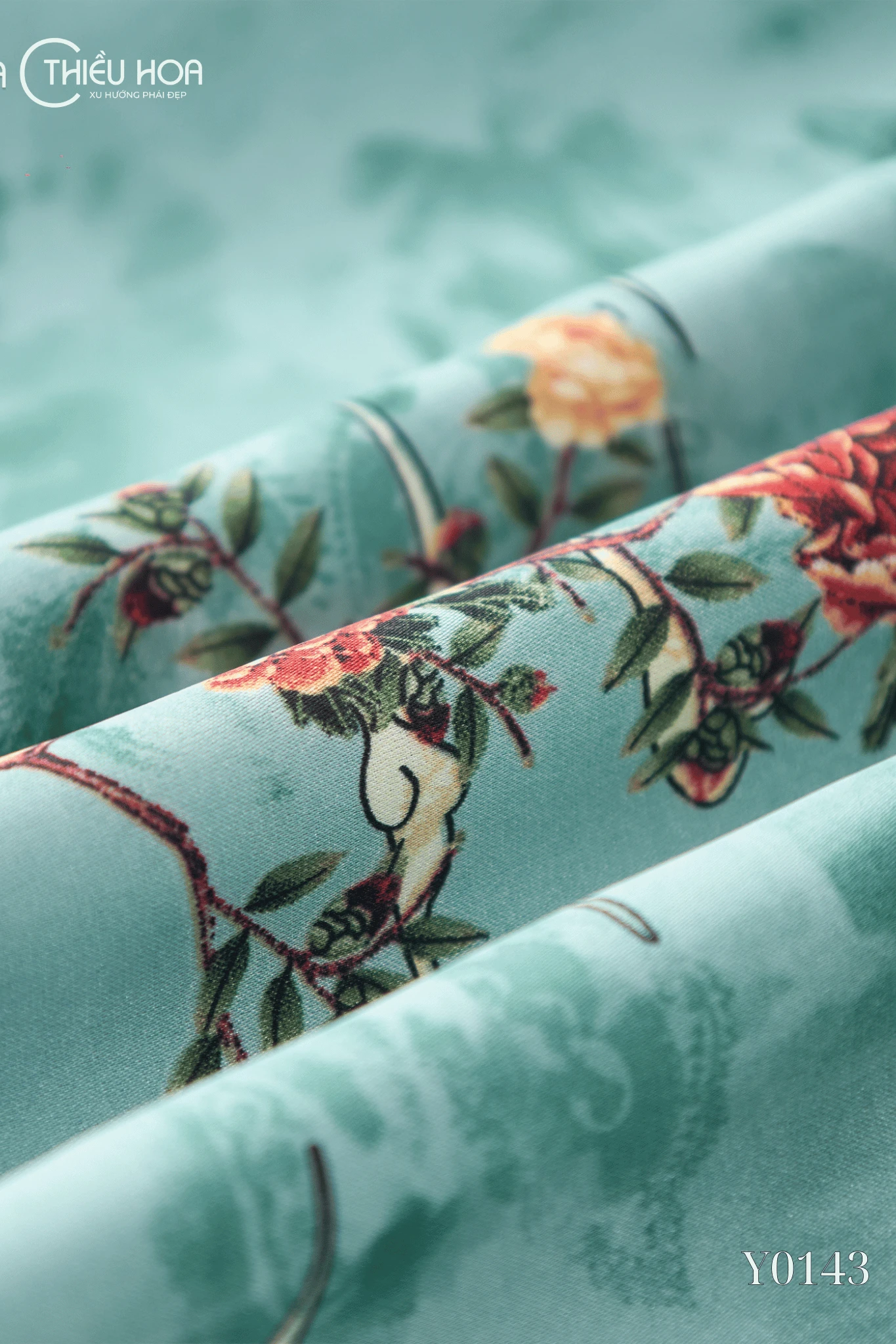 Hoa văn in sắc nét, phối màu trang nhã, nổi bật trên nền lụa Hàn trơn bóng, giúp tổng thể thiết kế thêm phần hài hòa và cuốn hút.