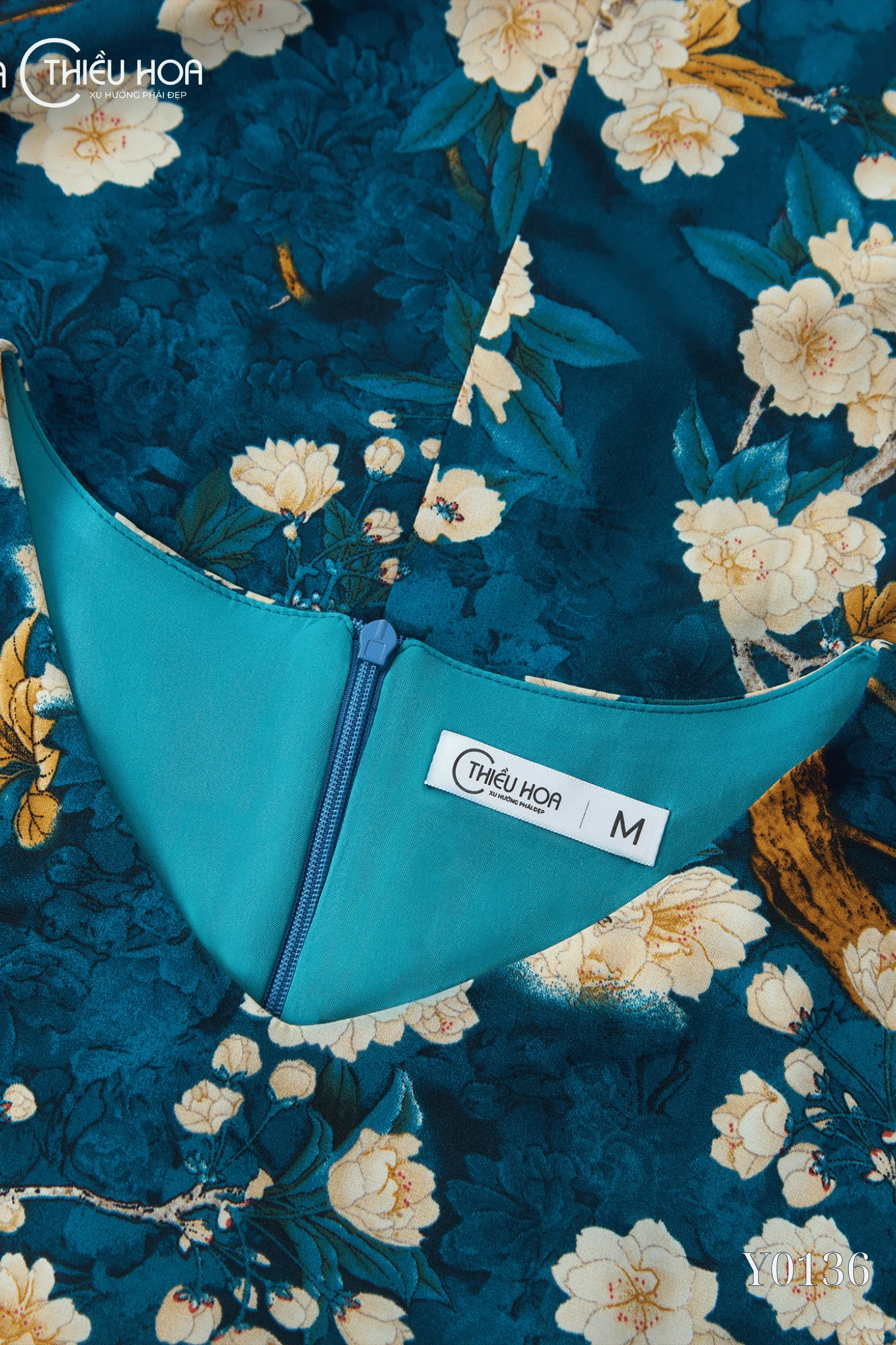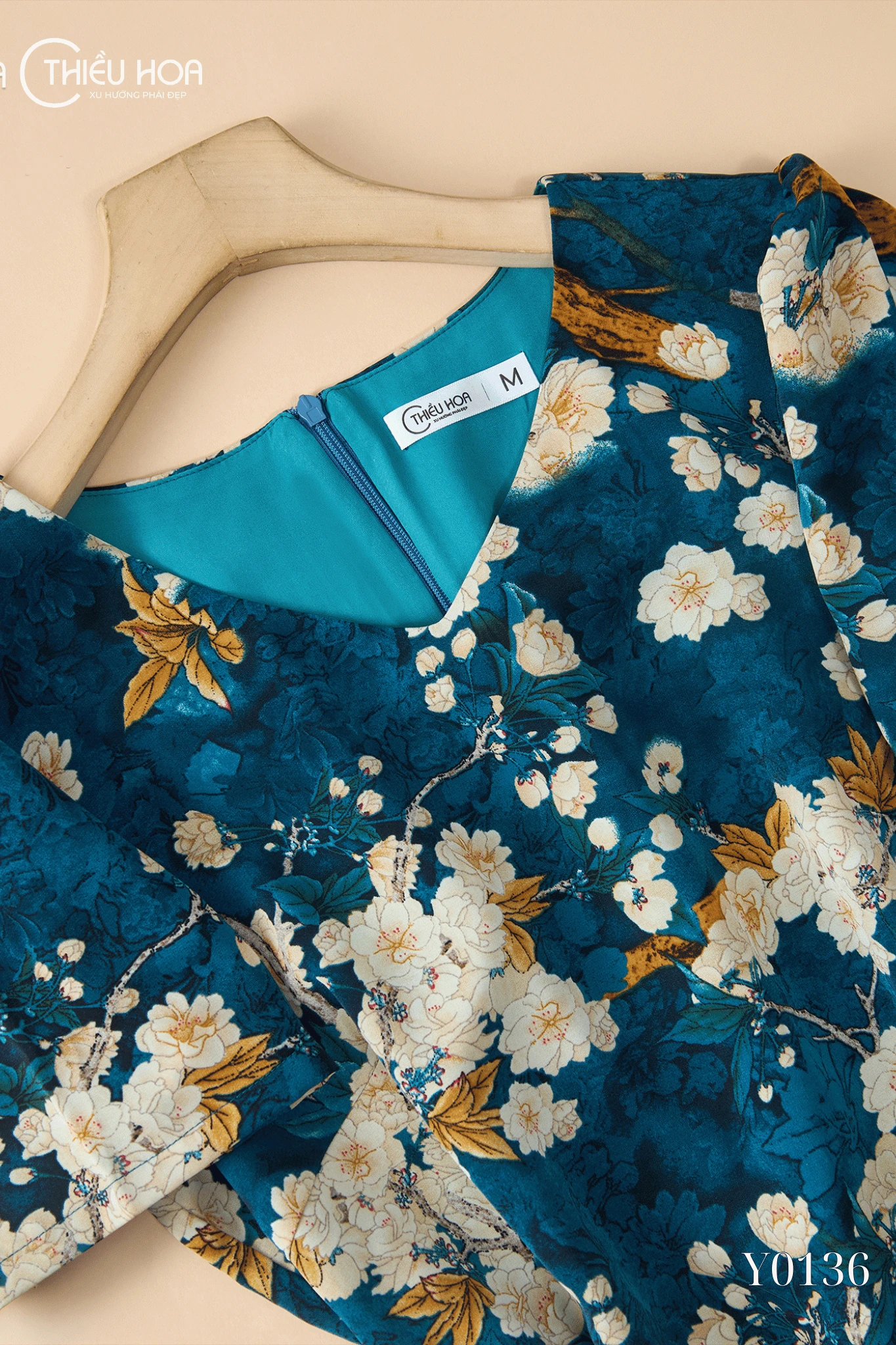 Họa tiết hoa nhã nhặn được in sắc nét với tông màu trắng – vàng nhạt nổi bật trên nền xanh đậm, tạo hiệu ứng thị giác thu hút nhưng không quá rực rỡ – phù hợp với độ tuổi trung niên.