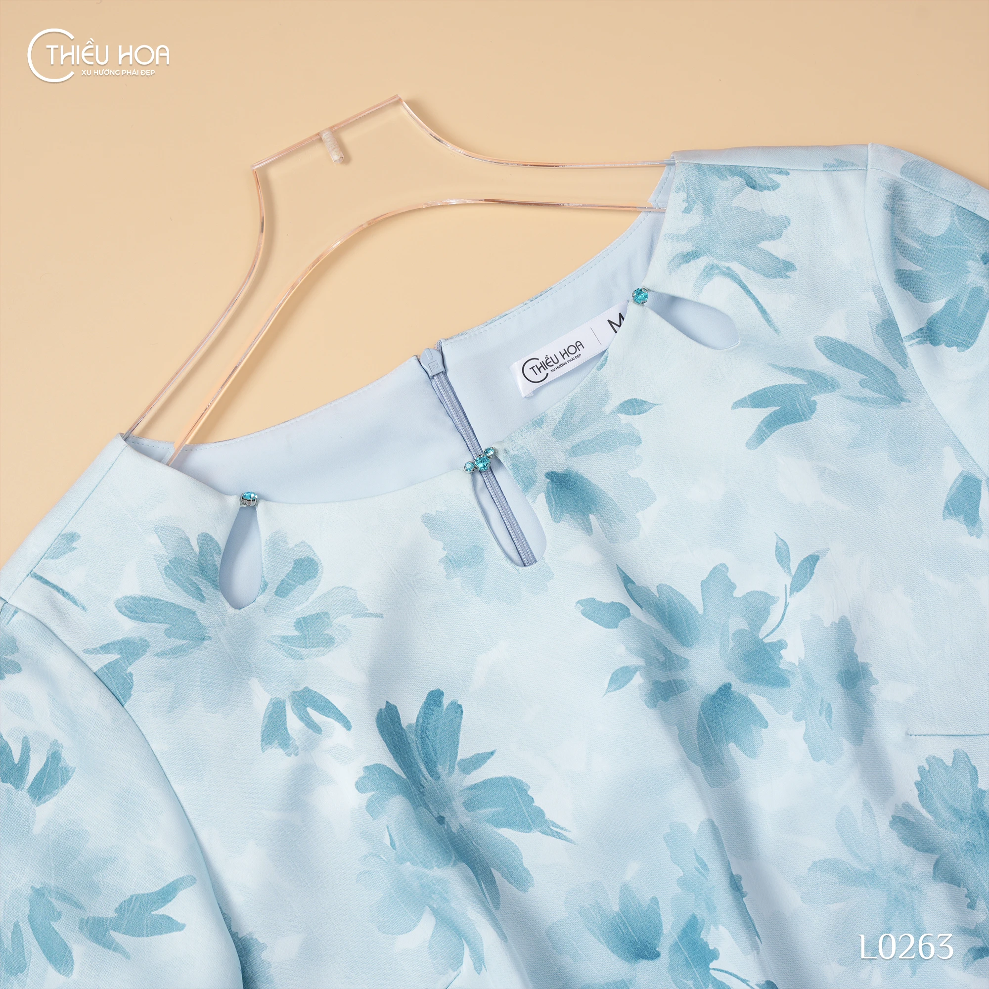 Đầm trung niên DD5L0263 sử dụng chất liệu lụa mềm mại với độ bóng nhẹ tự nhiên, mang lại cảm giác thoáng mát tuyệt đối. Bề mặt vải được in họa tiết hoa màu xanh nhạt theo phong cách loang màu, mang lại vẻ thanh thoát và nữ tính. Lớp vải nhẹ nhàng, không dính cơ thể, thấm hút tốt và đặc biệt phù hợp với nhiều điều kiện thời tiết. Khi kết hợp cùng giày cao gót hoặc phụ kiện đơn giản, đây là lựa chọn hoàn hảo cho phong cách duyên dáng, hiện đại và đầy cuốn hút.