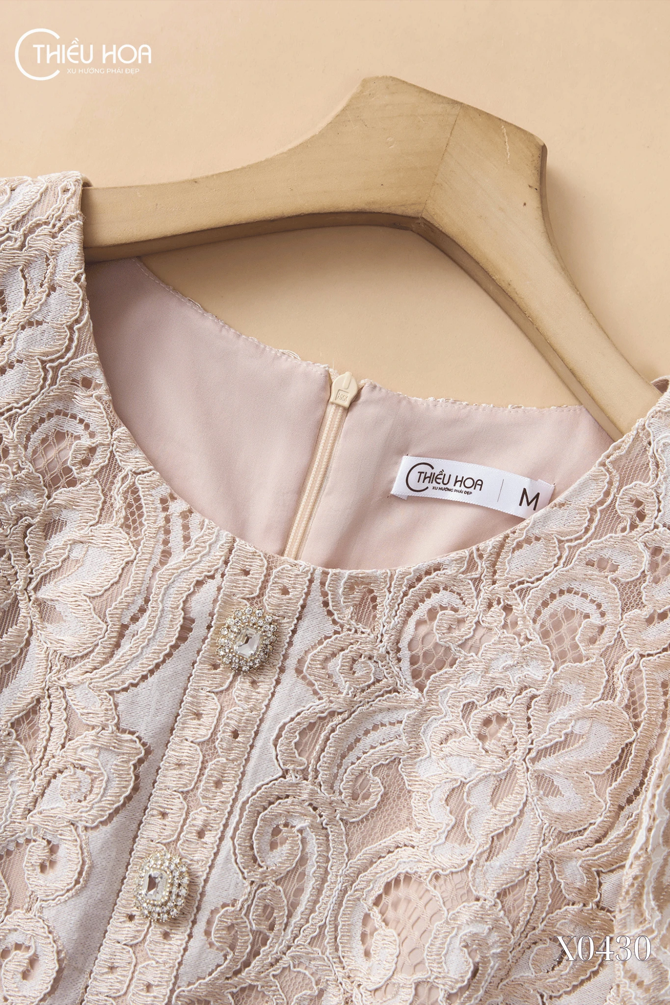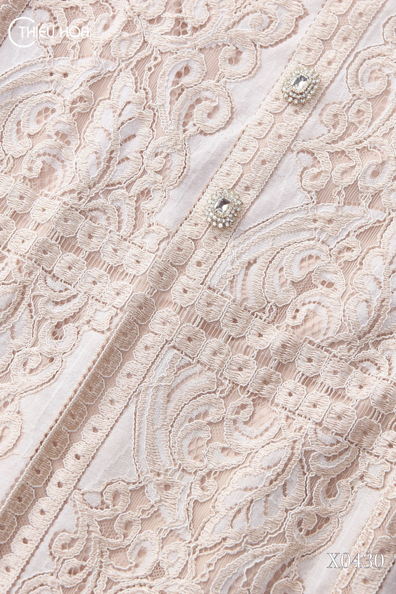 Đầm ren thêu hoa DD5X0430 được may từ vải ren thêu họa tiết nổi cao cấp, kết hợp lớp lót lụa mỏng bên trong, mang lại sự thoải mái và kín đáo tối đa. Vải ren có hoa văn uốn lượn tinh tế, mang đến vẻ đẹp nữ tính và đầy quyến rũ.