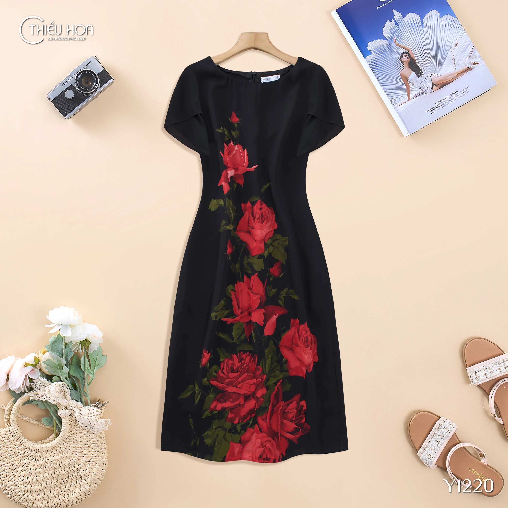 Mẫu đầm lý tưởng để mặc đi làm, dự tiệc nhẹ, gặp mặt gia đình hay dạo phố – giữ vững sự thanh lịch nhưng vẫn nổi bật với chi tiết hoa đầy nữ tính.
