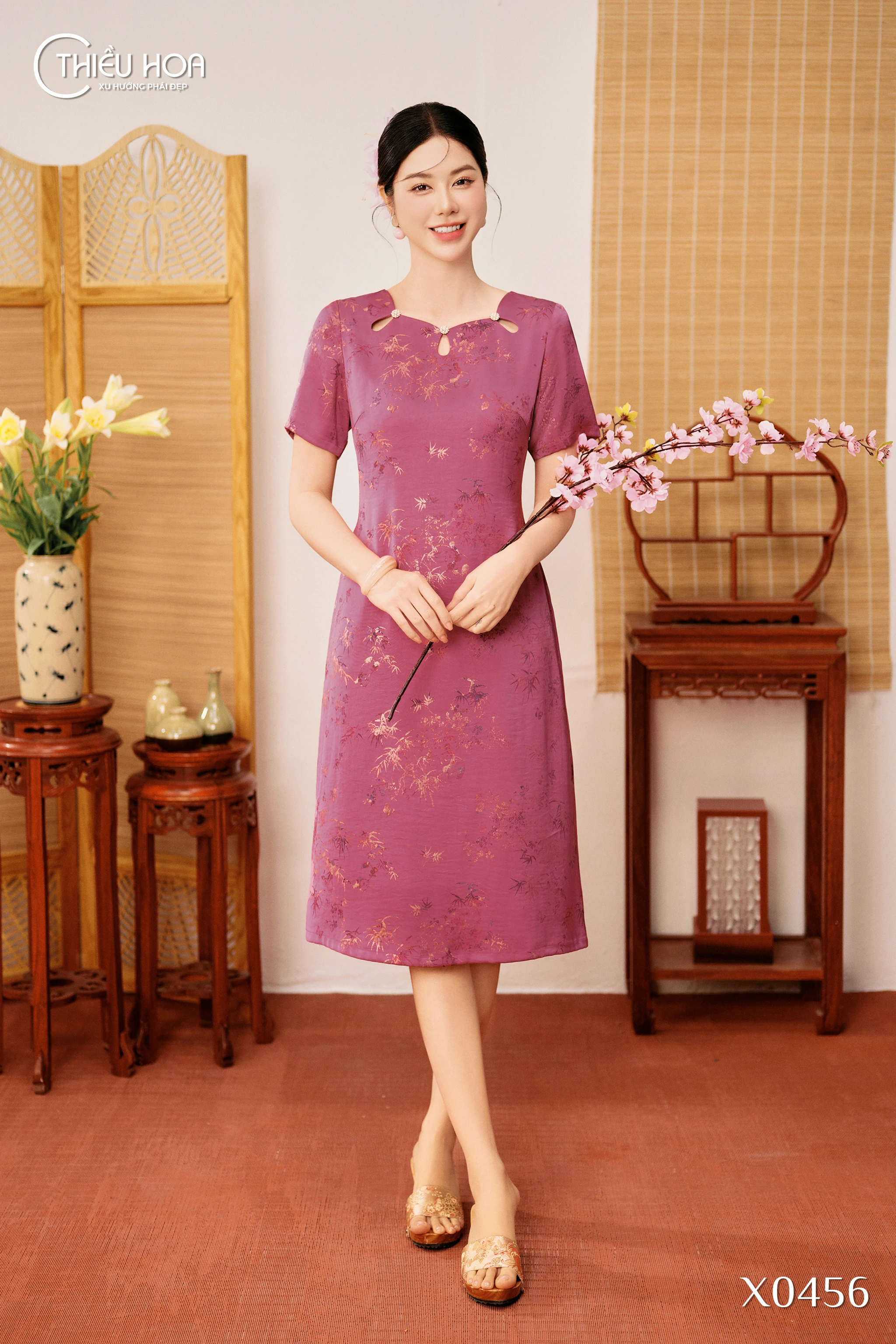 Đầm trung niên dạo phố tơ hoa thương hiệu Thiều Hoa DD5X0453 – Thanh nhã, nhẹ nhàng và tinh tế