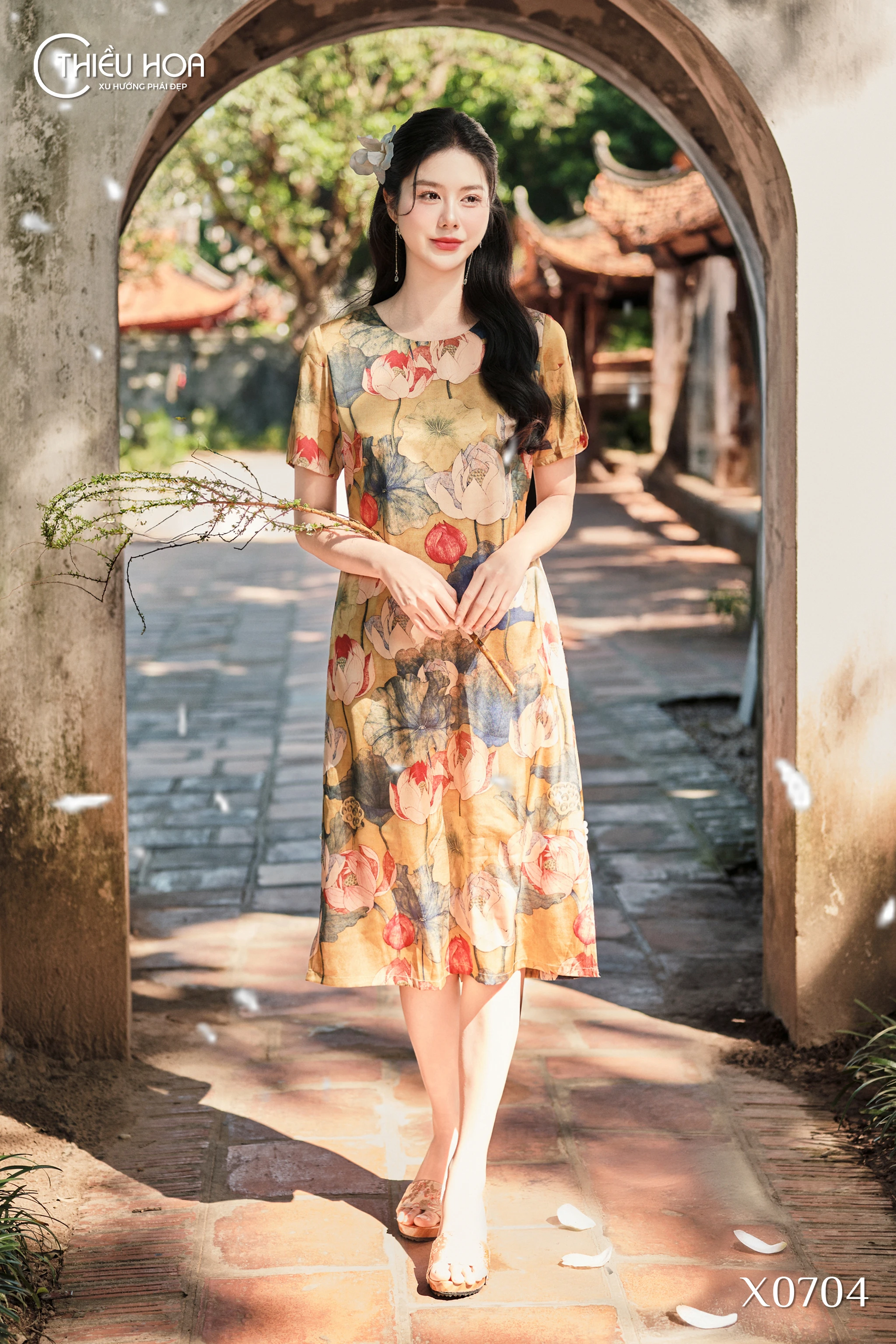 Đầm Trung Niên Lụa Hàn Mềm Mại Dạo Phố DD5Y0707 – Dáng Suông Thanh Lịch Thương Hiệu Thiều Hoa
